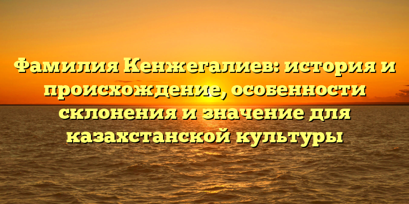 В данной статье мы рассмотрим историю Кенжегалиевых, особенности склонения фамилии и ее значение для казахстанской культуры.