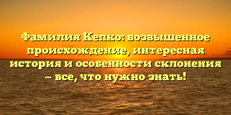 - Открытие тайн фамилии Кепко: происхождение, история и склонения.