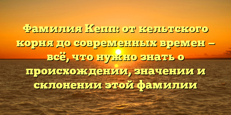- Исследуем корни и современное значение фамилии Кепп: всё о происхождении, склонении и интересных фактах