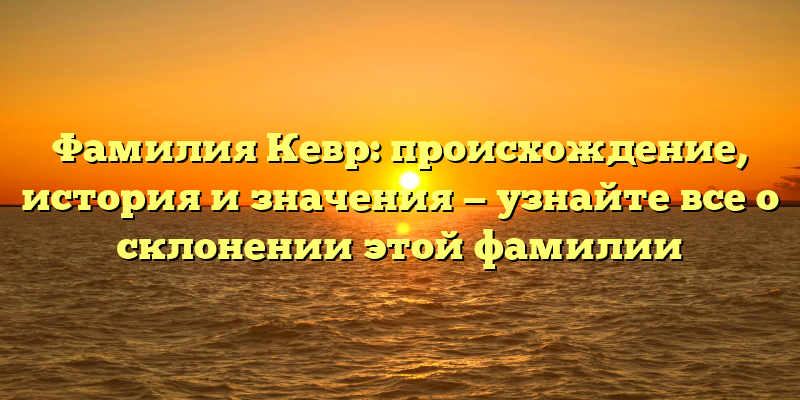 В этой статье мы рассмотрим происхождение, историю и значения фамилии Кевр, а также узнаем, как правильно склонять ее в разных падежах.