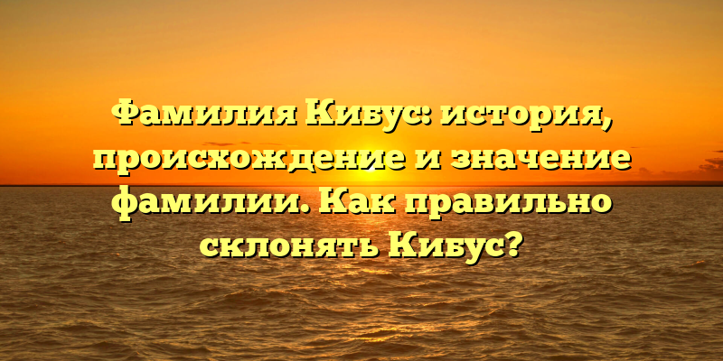 - Кибус: происхождение и значение фамилии, а также правила склонения