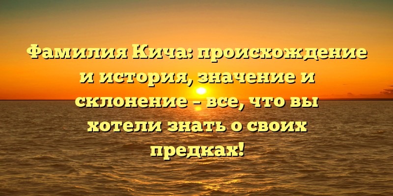 - Раскрываем тайны происхождения и истории фамилии Кича: узнайте значение и склонение своих предков!