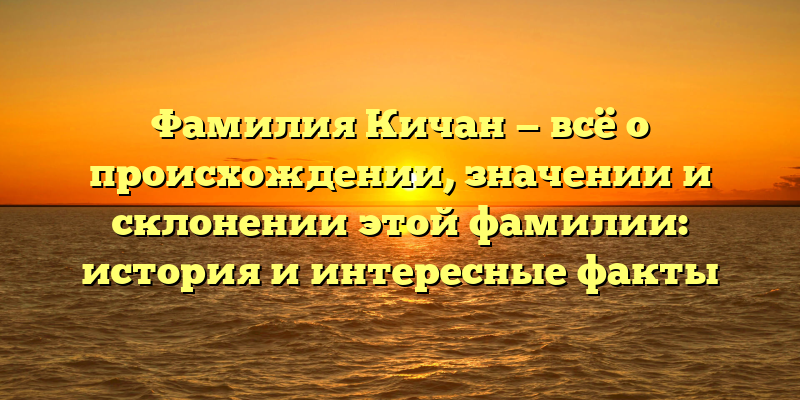Фамилия Кичан: история, значение и интересные факты о происхождении и склонении — SEO-заголовок для статьи о фамилии Кичан.
