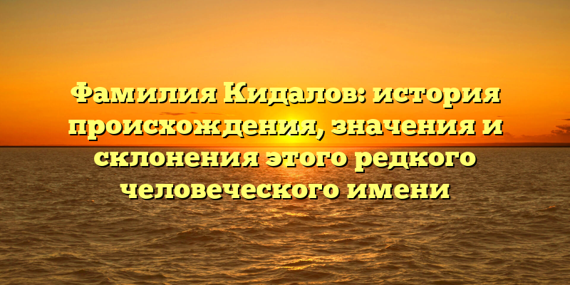 Фамилия Кидалов: все, что вы хотели знать о происхождении и значении этого уникального имени