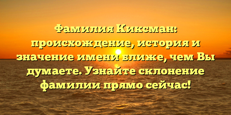 - Раскрываем тайны фамилии Киксман: происхождение, история и значение имени + склонение для Вас