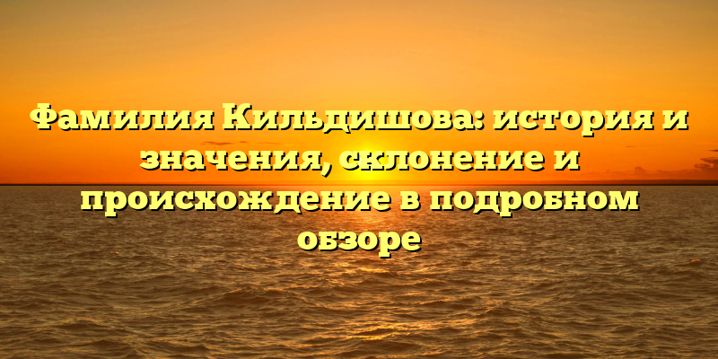 - Узнайте всё о фамилии Кильдишова: история, значения и происхождение в подробном обзоре