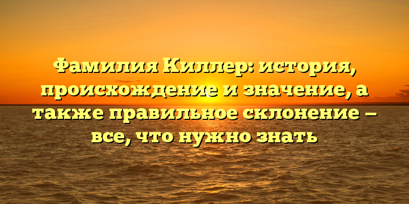 - Фамилия Киллер: история, происхождение и значение, а также грамотное склонение — полное руководство
