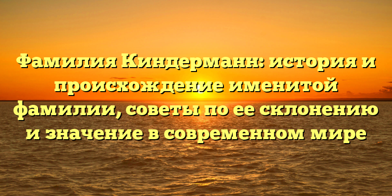 Фамилия Киндерманн: история, происхождение и полезные советы по ее правильному склонению в современном мире