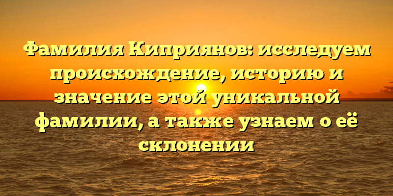 - Фамилия Киприянов: происхождение, история и значение — полный обзор и склонение