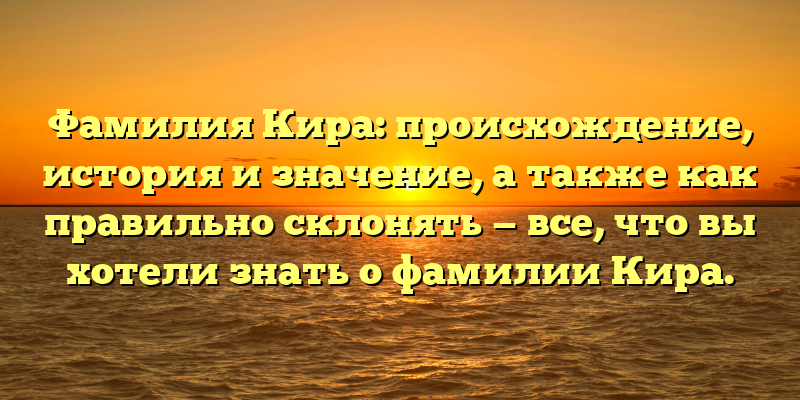 В данной статье мы расскажем о том, как склонять фамилию Кира, а также истории её происхождения и значения. Если вы хотели узнать больше о происхождении своей фамилии, то эта статья обязательна к прочтению.