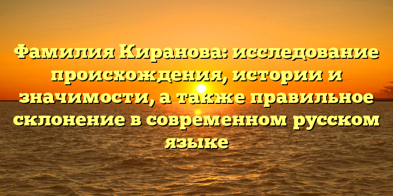 - Раскрываем тайны фамилии Киранова: история, происхождение и правила склонения в русском языке
