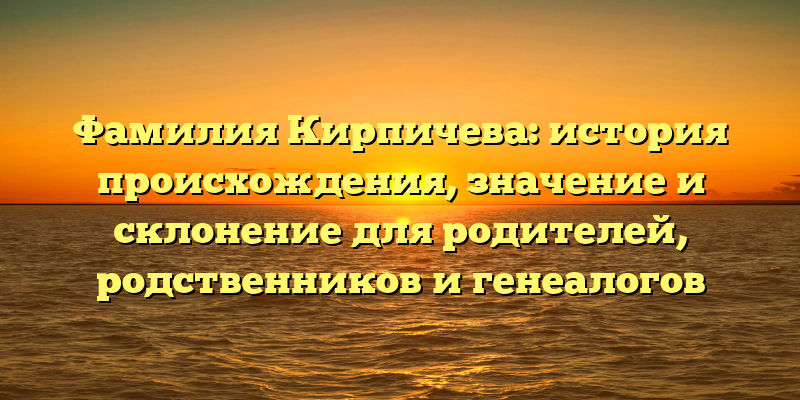 - Фамилия Кирпичева: исследование происхождения, значения и склонения для родителей, родственников и генеалогов