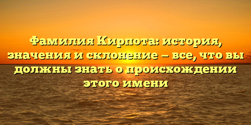 - Фамилия Кирпота: история, значения и склонение. Узнайте все о происхождении этого уникального имени.