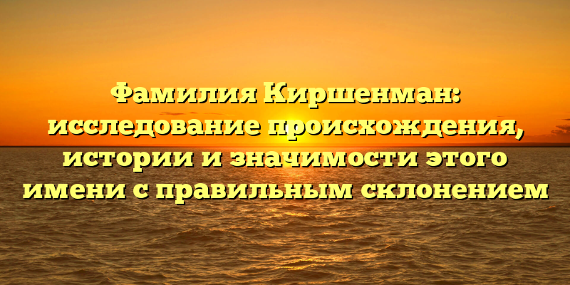 - Исследование происхождения, истории и значимости фамилии Киршенман с правильным склонением: всё, что нужно знать
