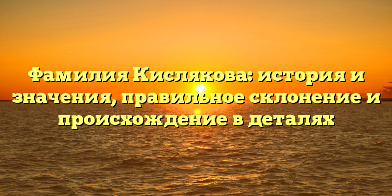 - Фамилия Кислякова: происхождение, значения и правильное склонение — история, которую стоит знать