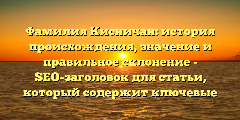 Фамилия Кисничан: происхождение, значение и правильное склонение — история, которая поможет понять вашу культурную и генеалогическую принадлежность