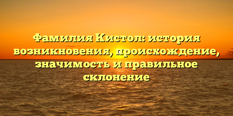 - Фамилия Кистол: происхождение, история и правильное склонение для родословных и генеалогических исследований