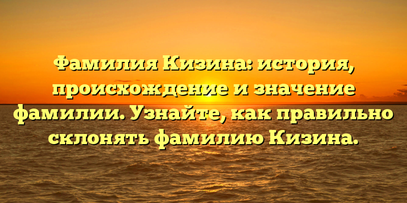 - Фамилия Кизина: происхождение и значение, а также правильное склонение.