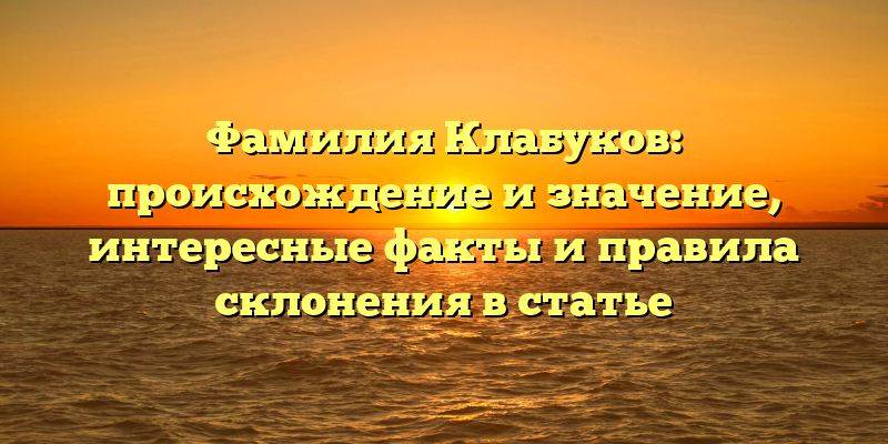 - Фамилия Клабуков: история происхождения, интересные факты и правила склонения!