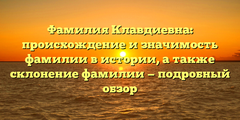 Фамилия Клавдиевна – это одна из самых интересных фамилий в России. Она имеет древнее происхождение и носит в себе большую историческую значимость. В данной статье мы рассмотрим происхождение и историю этой фамилии, ее значение в культуре и обществе, а также подробно изучим правильное склонение фамилии.