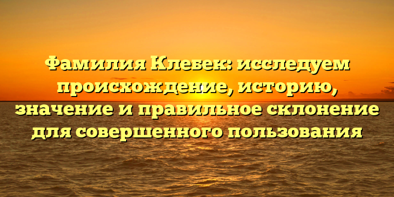 Фамилия Клебек изначально происходит из немецкого языка и имеет довольно интересное значение. В этой статье мы исследуем корни этого имени, его историю, значение и правильное склонение.