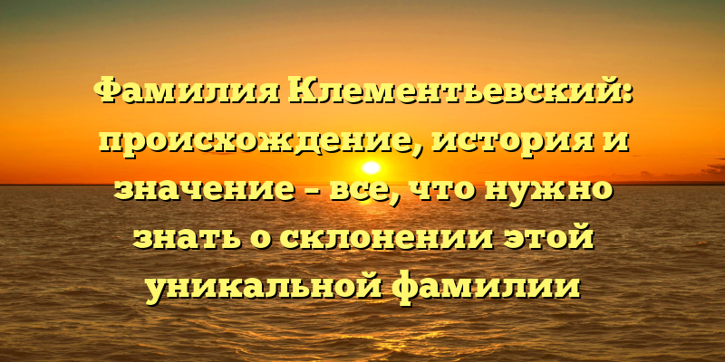 - Фамилия Клементьевский: происхождение, история и значение — узнайте все, что вам необходимо о склонении этой интересной фамилии