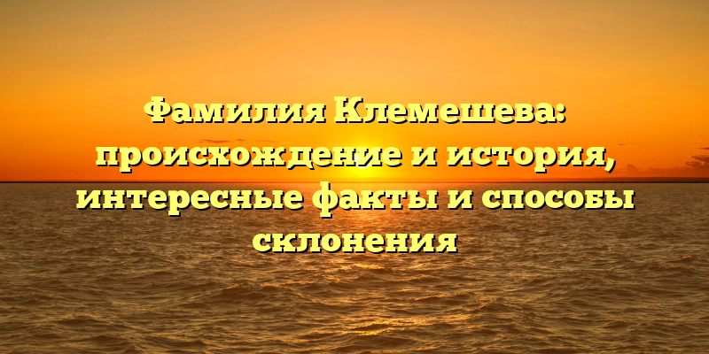 - Фамилия Клемешева: происхождение, история и способы склонения — все, что нужно знать