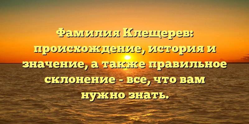 - Фамилия Клещерев: происхождение и история, правильное склонение и значение — гид для любопытных
