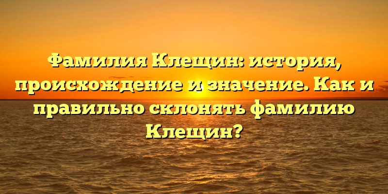 - Фамилия Клещин: происхождение, значение и правильное склонение — всё, что нужно знать!