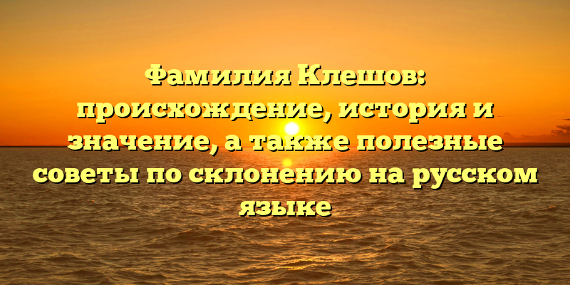 - Фамилия Клешов: исследование происхождения, истории и значения, а также советы по грамотному склонению на русском языке