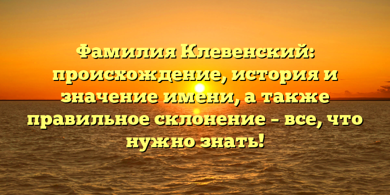 - Полное руководство о фамилии Клевенский: происхождение, история и значение, а также нюансы правильного склонения!