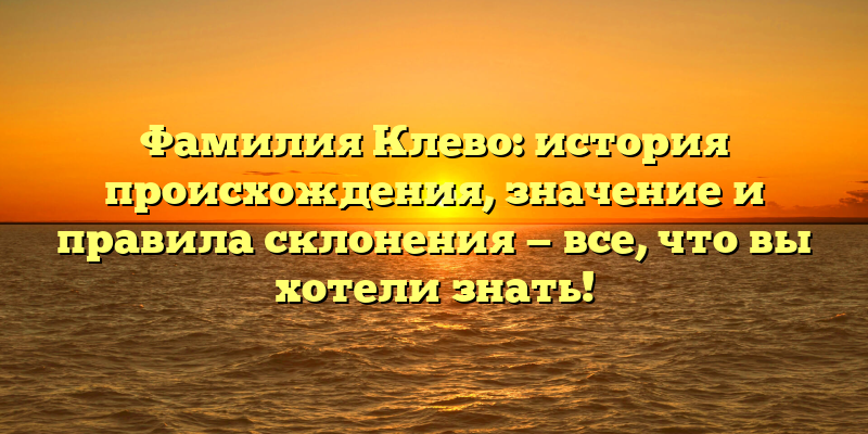Фамилия Клево — одна из самых интересных фамилий в мире. Она имеет древнее происхождение и связана с многими событиями и легендами. В этой статье мы расскажем вам все, что вы хотели знать о фамилии Клево — от истории ее возникновения до правил склонения.