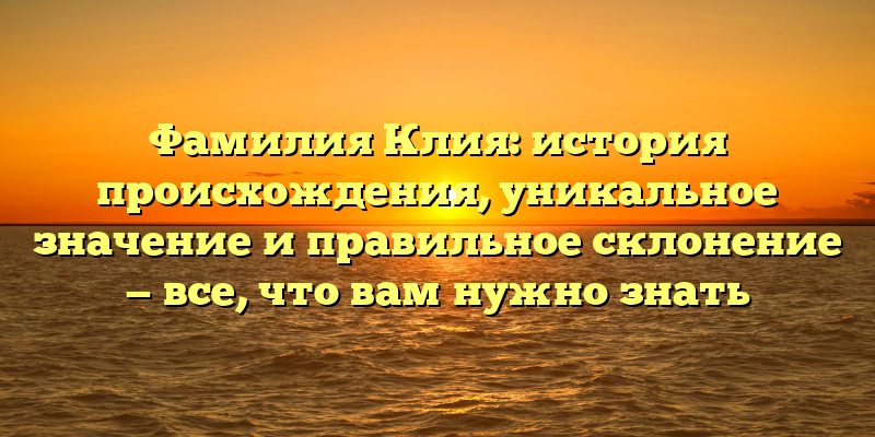 - Фамилия Клия: происхождение, значения и склонение — полное руководство для всех интересующихся