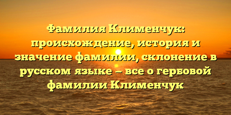 - История и происхождение фамилии Клименчук: обзор гербовой фамилии и ее склонение в русском языке