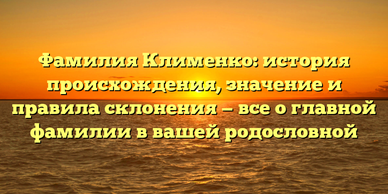 - Фамилия Клименко: происхождение, значение и правила склонения – полный гид по главной фамилии в вашей родословной