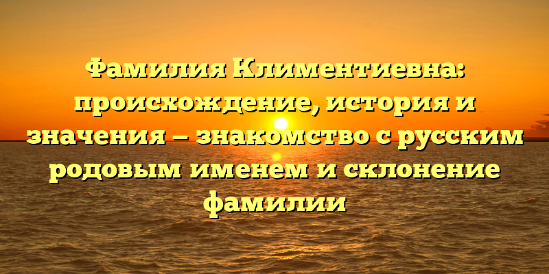 - Открытие тайн русского родового имена: Фамилия Климентиевна — происхождение, история и значения.