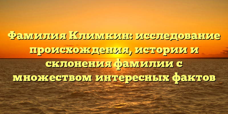 - Раскрываем тайны фамилии Климкин: история происхождения и удивительные факты