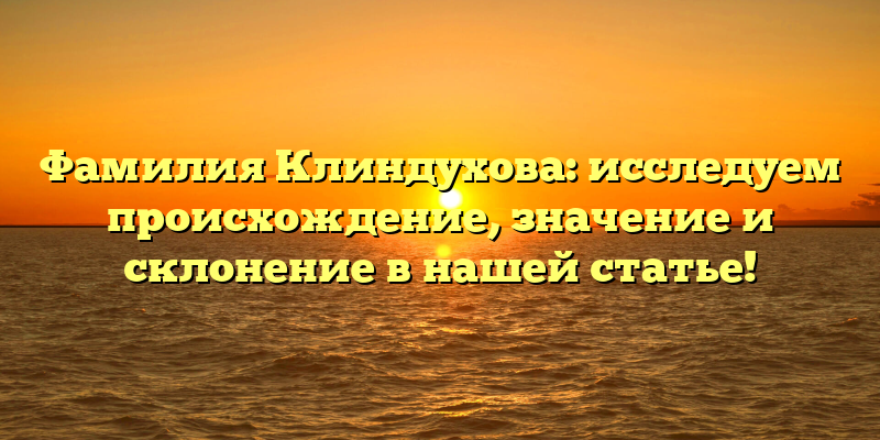 - Раскрываем тайны фамилии Клиндухова: происхождение, значение и правильное склонение в нашей статье