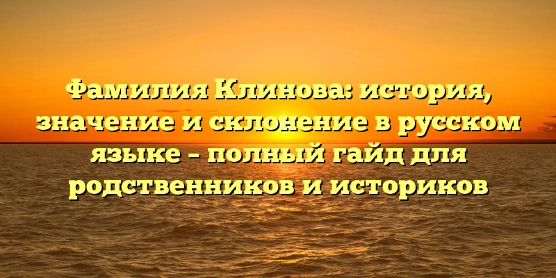- Фамилия Клинова: историческое и лингвистическое значение, а также правильное склонение в русском языке – эксклюзивный гайд для родственников и историков