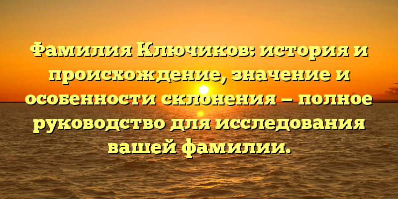 - Рассказываем о фамилии Ключиков: от истории до особенностей склонения. Получите полное руководство для изучения своих корней.