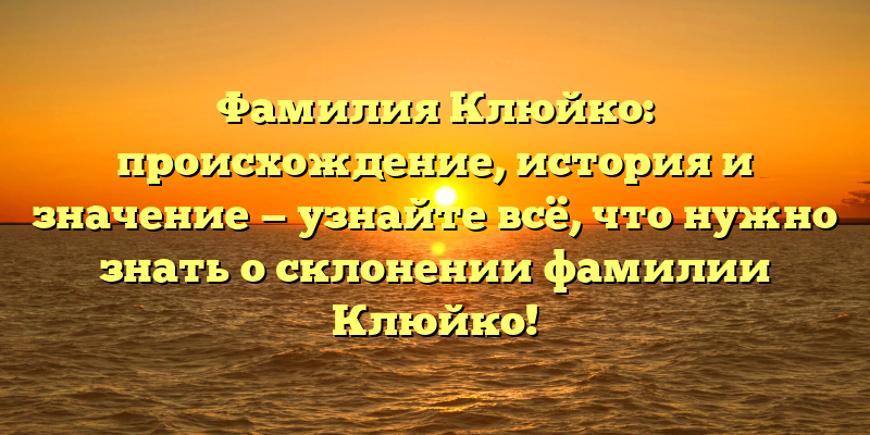- Фамилия Клюйко: происхождение, история и значение – практическое руководство по правильному склонению!