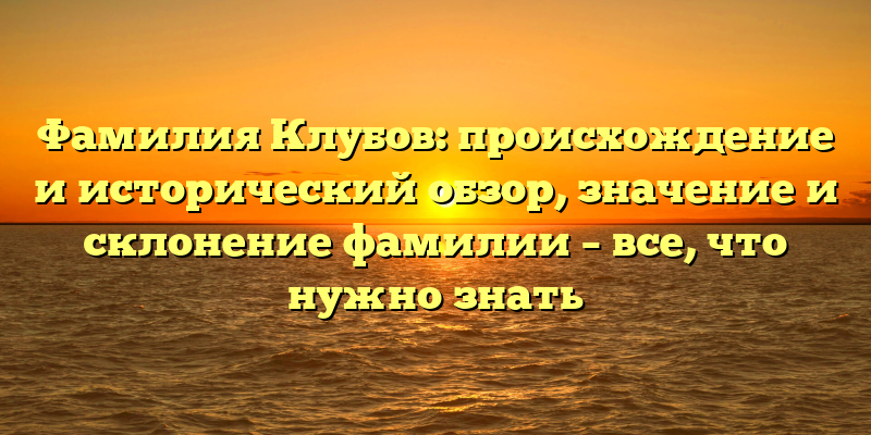 - Исследование происхождения и значения фамилии Клубов: история, склонение и интересные факты