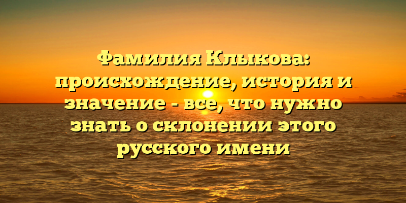 - Фамилия Клыкова: история происхождения и значение имени в деталях