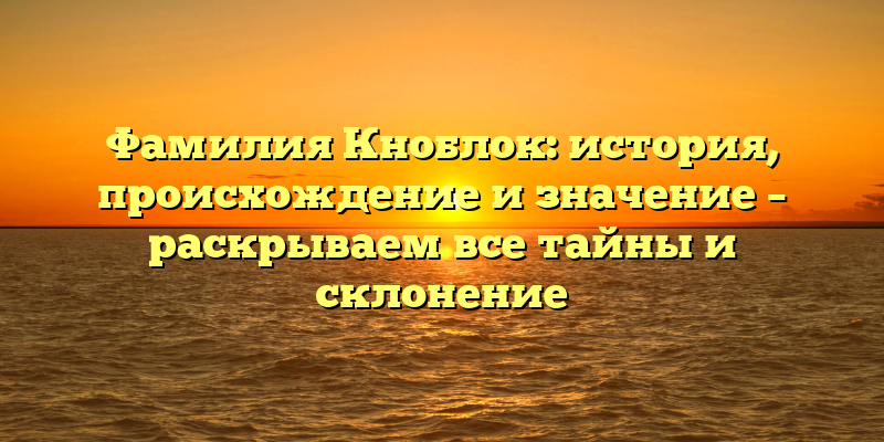 - Фамилия Кноблок: Какие тайны прячутся за этим именем? Раскрываем происхождение, значение и склонение