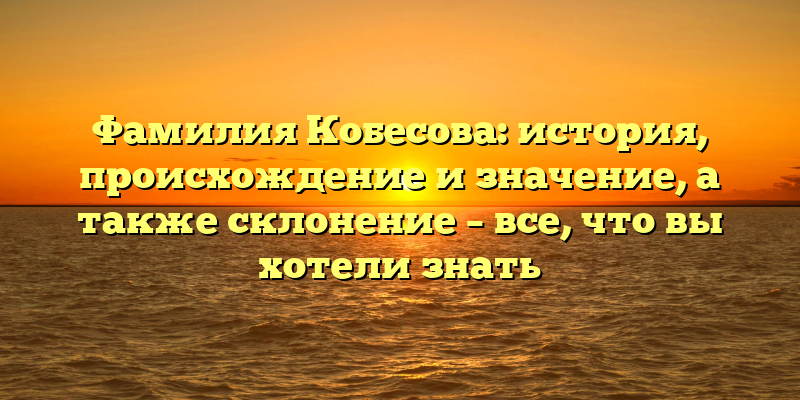 - Фамилия Кобесова: происхождение, значение и склонение. Все, что нужно знать об этом редком и уникальном имени.