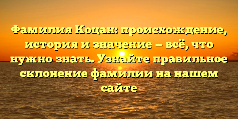 - История и значение фамилии Коцан: узнайте правильное склонение и происхождение на нашем сайте.