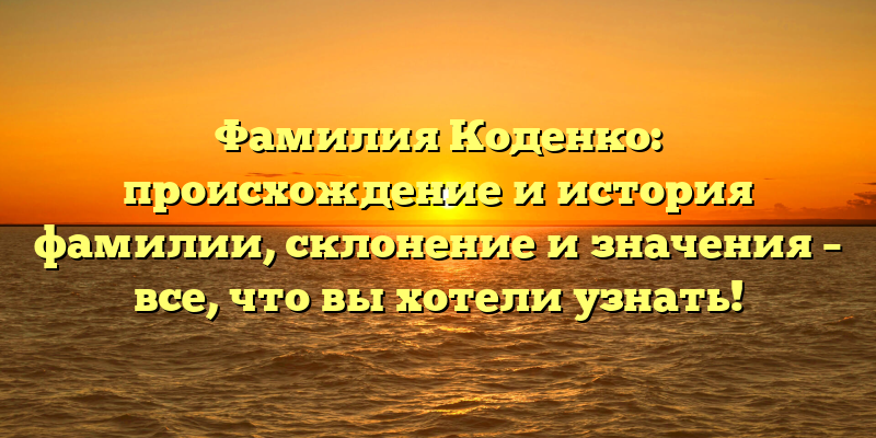 В этой статье мы расскажем о происхождении фамилии, ее истории, склонении и значениях. Будет интересно узнать, как фамилия Коденко появилась в разных регионах Украины, и как она изменилась на протяжении времени.