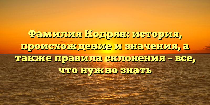- История и происхождение фамилии Кодрян, значимые значения и методы склонения: исчерпывающая информация в одной статье
