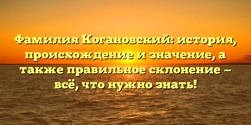 - Фамилия Когановский: происхождение, история и склонение — полное руководство для любопытных