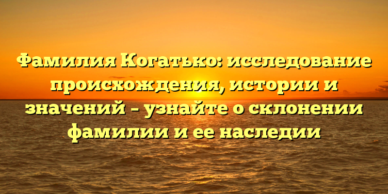 - Изучаем происхождение фамилии Когатько: история, значения и наследие в одной статье